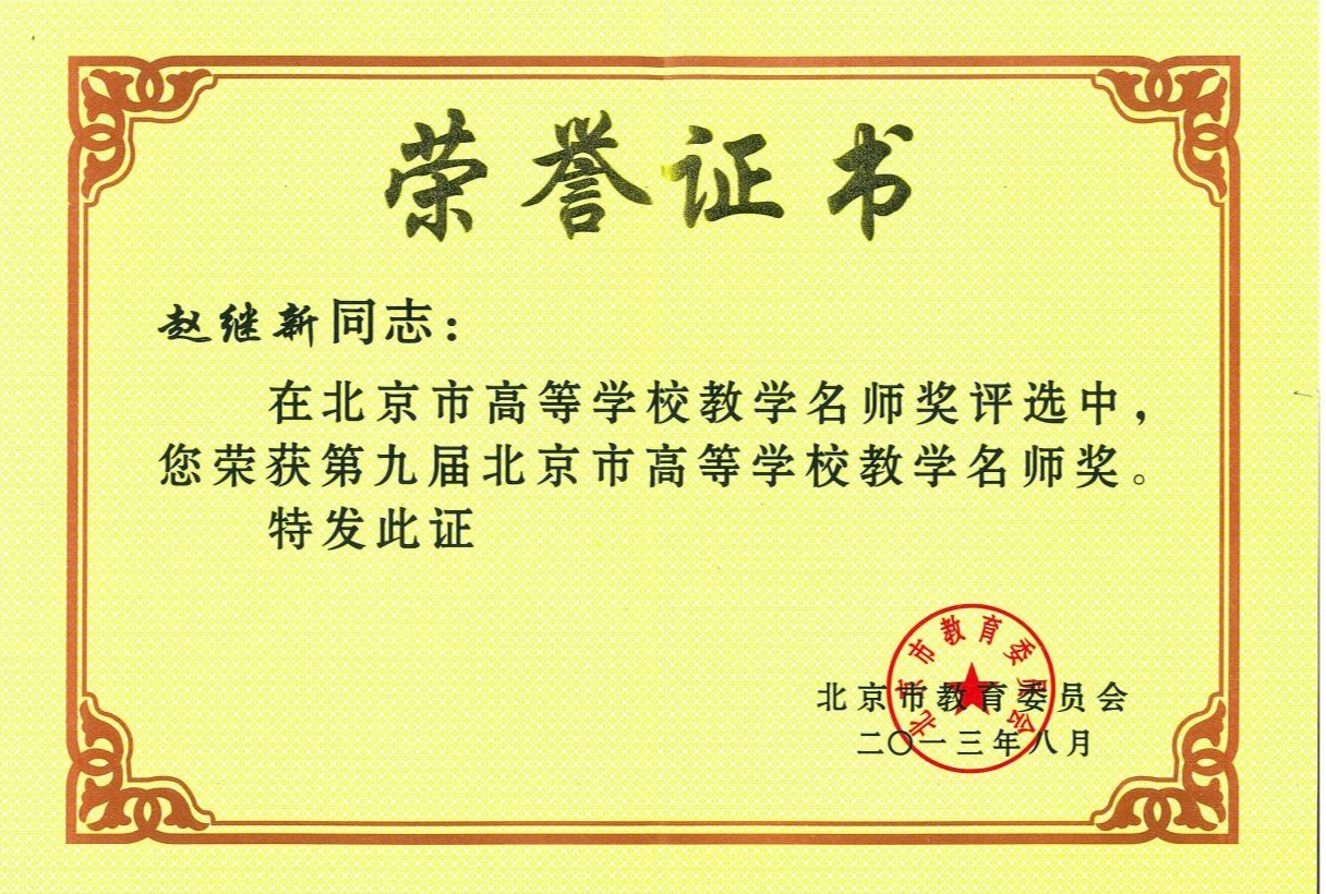 赵继新老师荣获第九届北京市高等公司教学名师奖 |