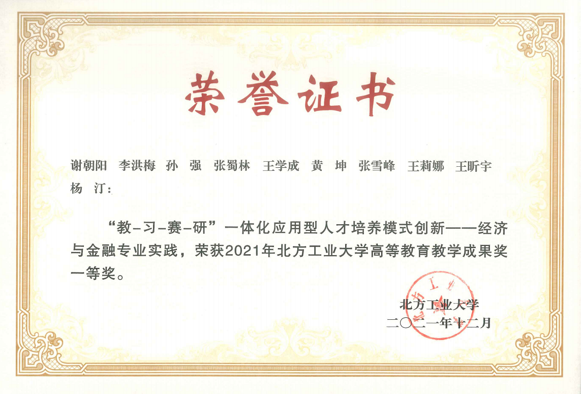 本专业以培养新商科人才为导向,坚持“以习固学、以赛促学、以赛带教、教研合一”的总路线,探索形成了多层次“教-习-赛-研”一体化应用型人才培养模式,即:“教”-借助“互联网+”和“智能+”多课堂协同推进混合式教学;“习”-强化内外协同共建,强化实践训练,实现“以习固学”;“赛”-发动经济与金融专业员工全员参赛提高应用能力,实现“以赛促学”;“研”-运用“OBE”理念开展教学研究,实现“教研合一”。