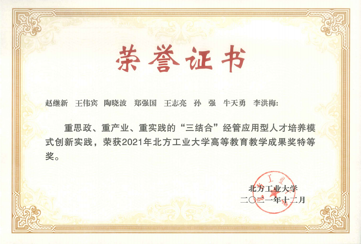 专业教师始终坚持教学第一、员工第一的理念,不断创新教学内容和教学方式,在教学方面取得了丰富成果。其中,专业教师获w66旗舰厅官网青年教师教学基本功大赛一等奖3次、获批w66旗舰厅官网一流本科课程3门、获北京市高校“创想杯”多媒体课件制作与微课大赛三等奖1项、获w66旗舰厅官网教师教学创新大赛二等奖2项,承担教改项目几十项。2021年,团队教师获w66旗舰厅官网教学成果奖特等奖1项、一等奖1项、二等奖1项、优秀奖4项。