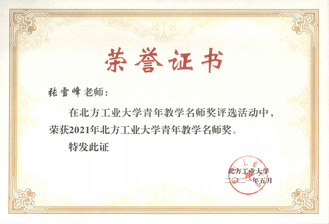 张雪峰-校级青年教学名师 |