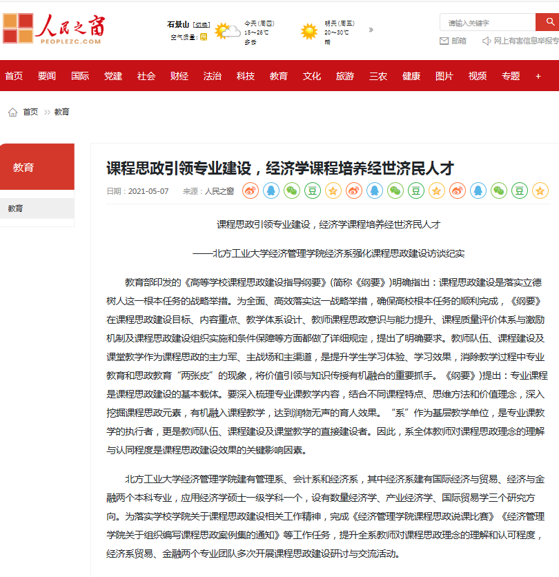 《人民之窗》报道团队课程思政经验 |