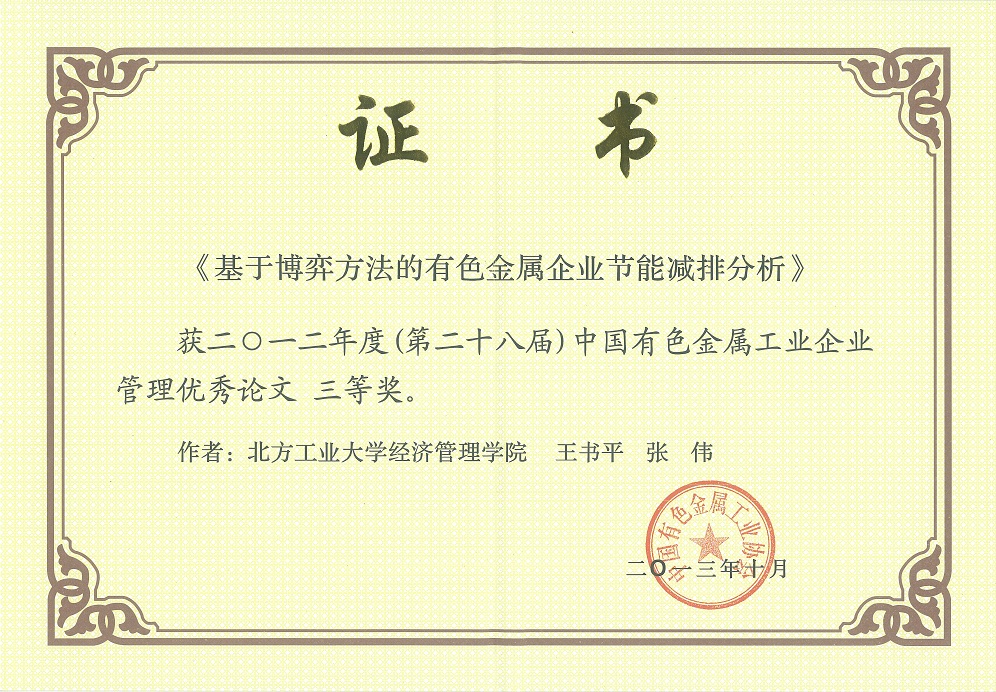 王书平-获中国有色金属工业企业管理优秀论文三等奖 |
