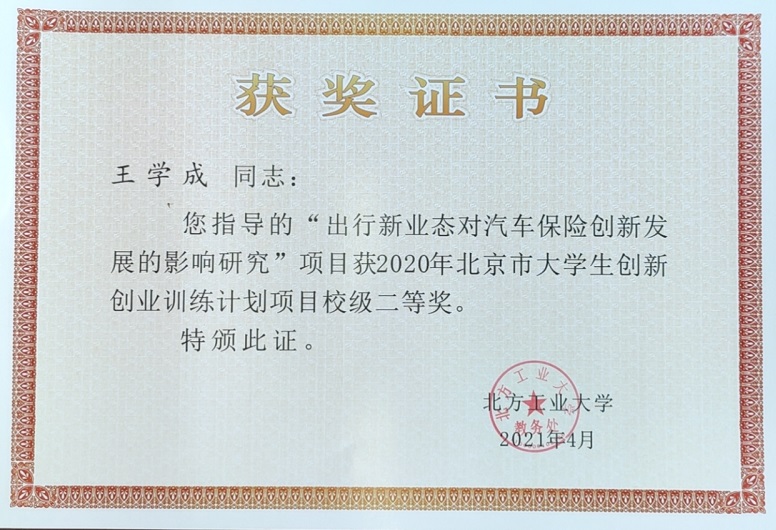 王学成-校级大创项目二等奖指导教师 |
