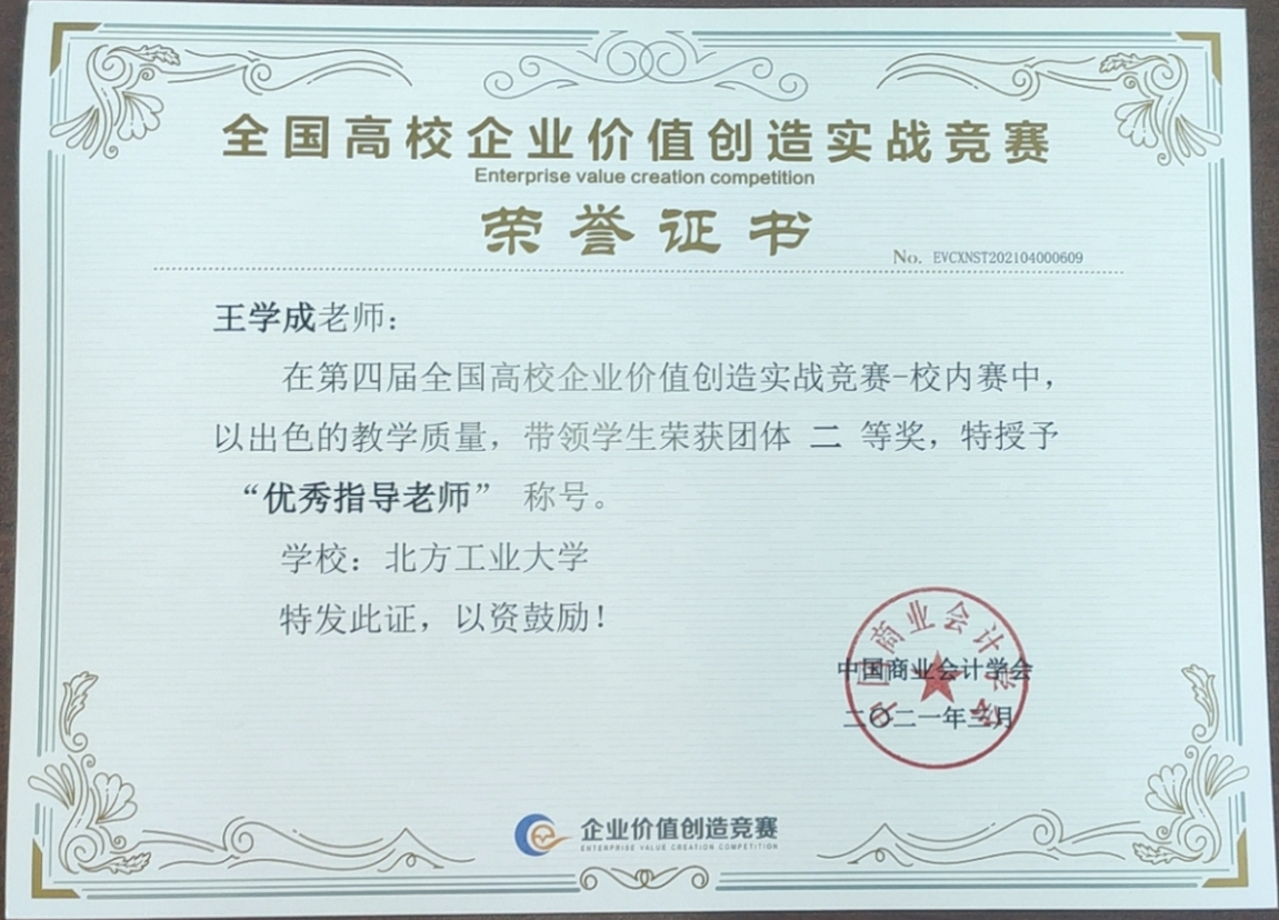 王学成-全国高校企业价值创造赛优秀指导老师 |
