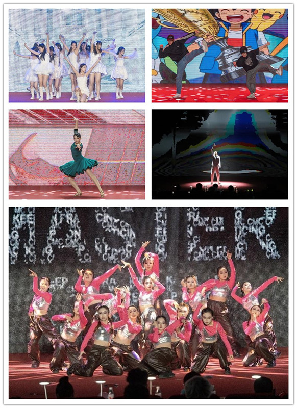 炫彩的灯光闪亮全场,舞者们用灵动的身姿演绎着青春的旋律,他们的动作整齐有力,仿佛每一个节拍都能敲打出激情,他们用舞蹈表现着内心对于美好未来的追求与向往。青春的色彩在舞蹈中渲染,绽放出独特的魅力;青春的旋律在舞蹈中演绎,激情与梦想在这一刻完美融合。