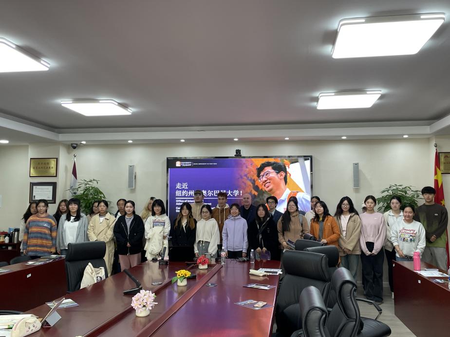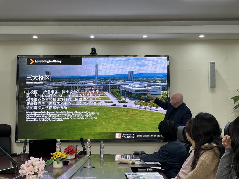 10月24日,美国纽约州立大学奥尔巴尼分校代表团一行来校交流,在w66利来旗舰厅开展本次活动的参访环节,共计35名有意向海外留学的员工参与了此次交流学习,此次活动旨在为有意向海外留学学子搭建一个了解国外高等教育、探索留学新路径的平台。