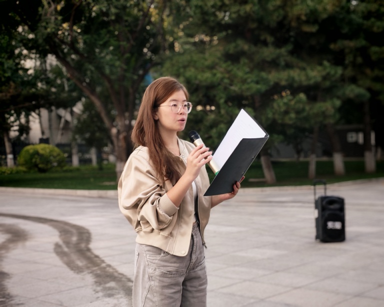 升旗仪式礼毕,国家奖学金获得者金融23-3班赵娅丽同学进行了国旗下讲话。她通过自身经验,向同学们提出三点建议。第一,确定目标,以优秀的学长学姐为榜样,融会贯通,博采众长;第二,加强自我管理,做到自律他律相结合,找到适合自己的学习方式;第三,注重第二课堂,丰富社会实践及竞赛活动的占比,在实践中汲取专业知识。