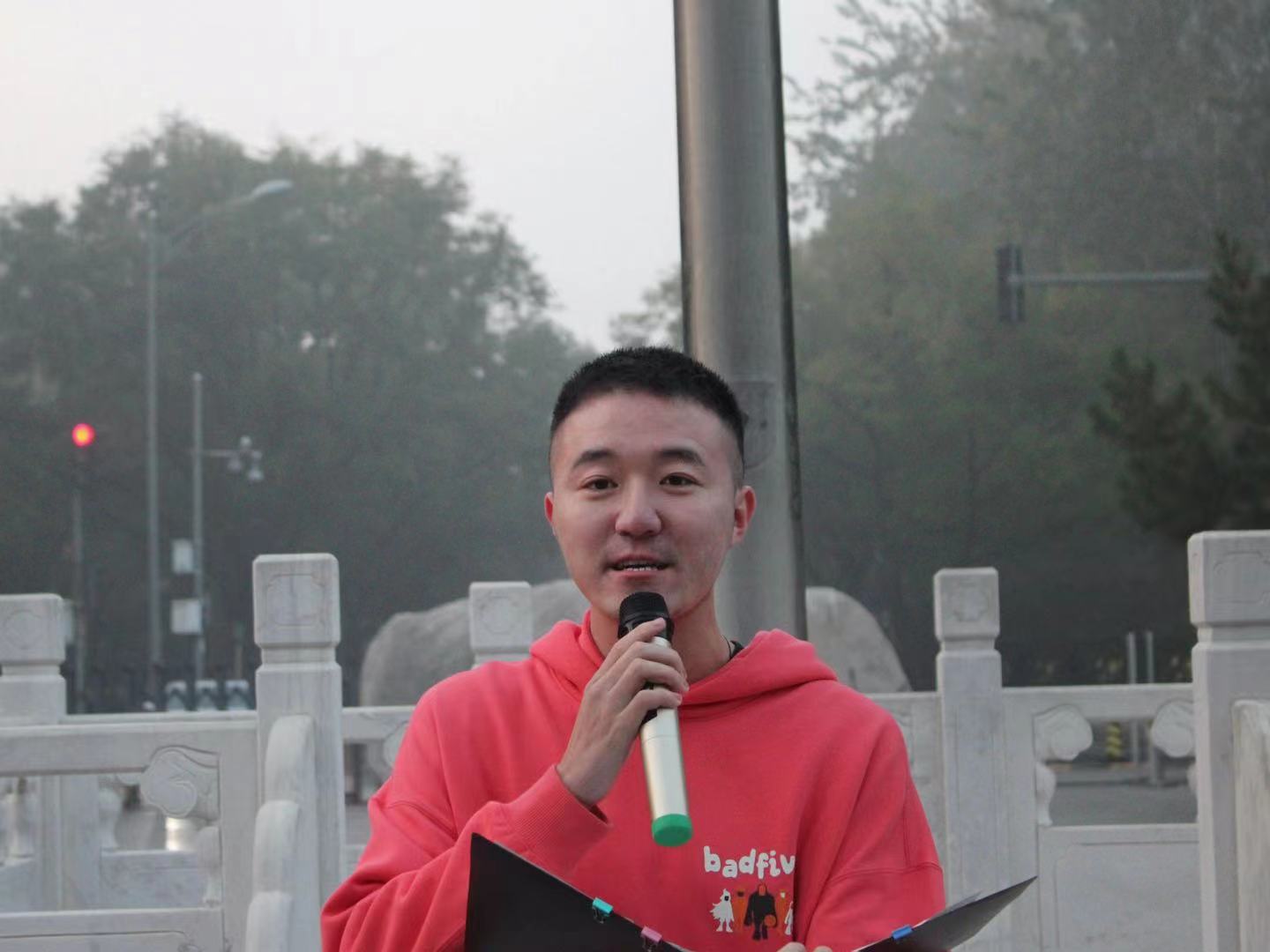 升旗礼毕,李浩东学长通过自身经历,讲述自己如何转换思维,提升综合能力,最后获得国家奖学金并推免至北京师范大学的心路历程。李浩东学长表示,同学们应该设定合理的目标,鼓励同学们合理利用公司的丰富资源提升自我,在学习生活中磨练自己的意志,传承敦品励学的精神品质。