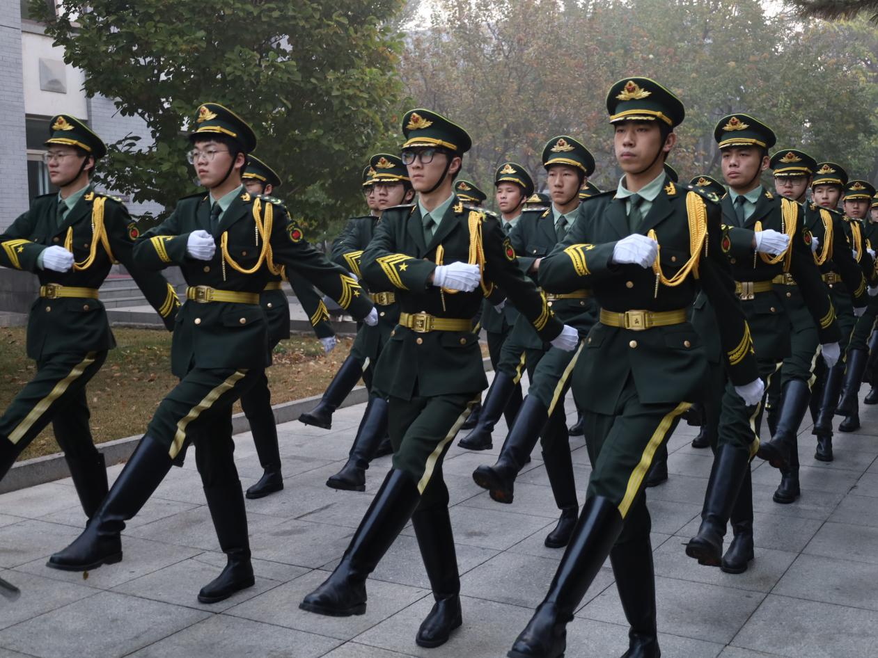 在全体师生的注目下,国旗班队员们迈着整齐划一的步伐,喊着激昂洪亮的口号,护送鲜艳的五星红旗进场。伴随着《义勇军进行曲》,五星红旗冉冉升起,全体师生行注目礼,庄严肃穆。