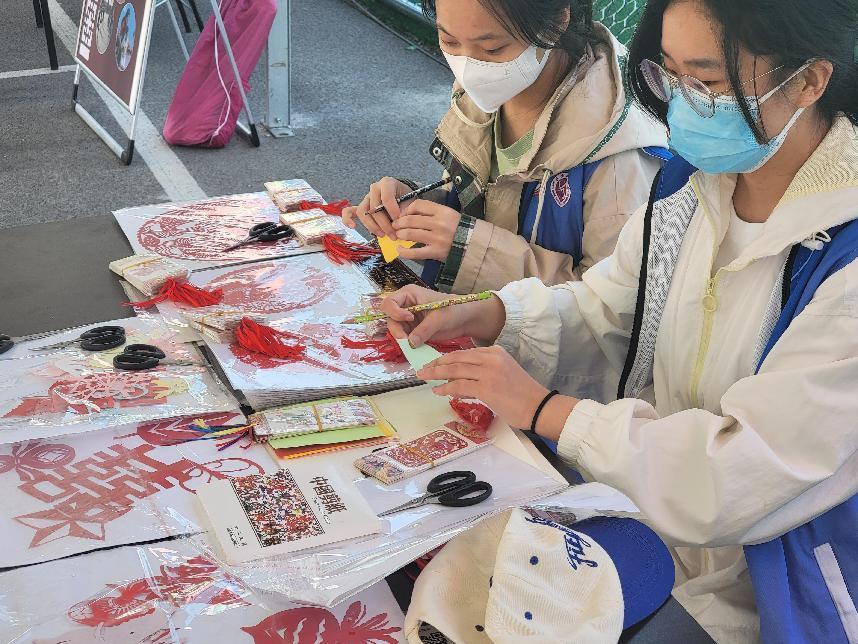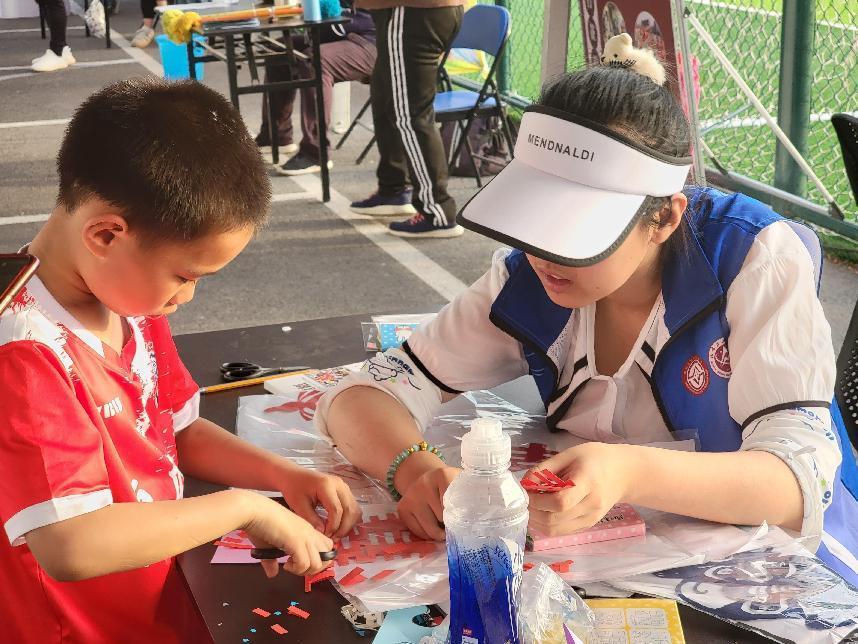 剪纸技艺作为中华传统非遗技艺,融入了人民群众对生活美好的祝愿。在石景山区德瑞凯通足球公园,志愿者们在石景山区第四代非遗剪纸文化传承人杨秀英老师的带领下,耐心细致教游客们剪纸。