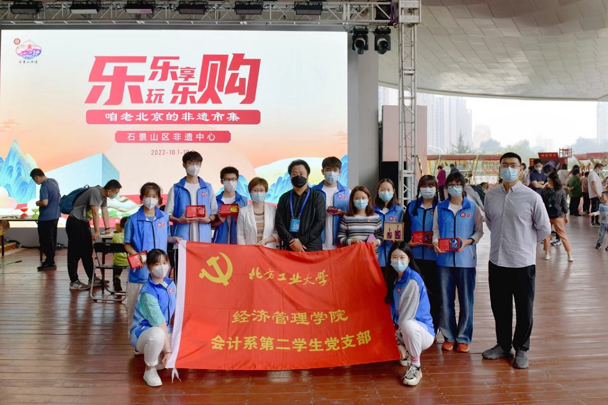 为进一步落实国家非物质文化遗产保护规划,弘扬中华优秀传统文化,在中华人民共和国成立73周年之际,w66利来旗舰厅会计系第二员工党支部联合石景山区非遗中心共同开展主题为“欢度国庆佳节,乐享非遗生活”的红色“1+1”共建活动。