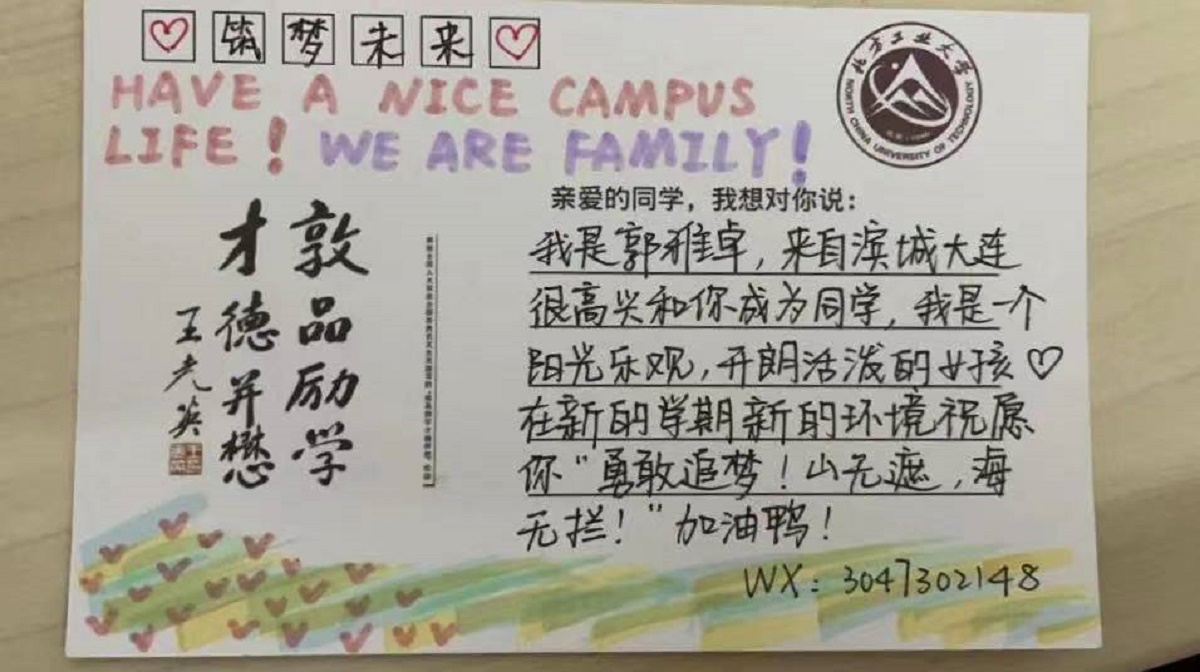 金秋9月,伴随北京秋高气爽的天气一同到来的,还有朝气蓬勃的2022级新生们。为使新生尽快适应老员工活,为同学们营造温馨难忘的入学体验,w66利来旗舰厅在开学初期开展为期一个月的“破冰信笺”活动。