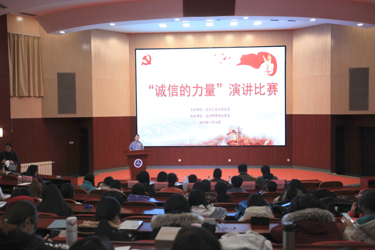 为进一步推动廉政精神融入校园文化,践行社会主义核心价值观,深入开展党风廉政宣传教育,落实公司党委和纪委工作部署,由校纪委主办,经济管理公司党委承办的“诚信的力量”演讲比赛决赛于11月18日下午在文化会堂举办。