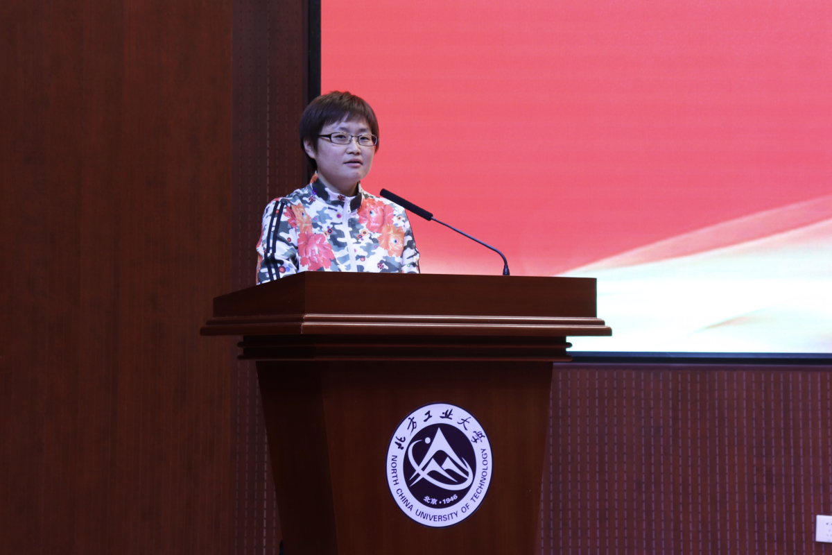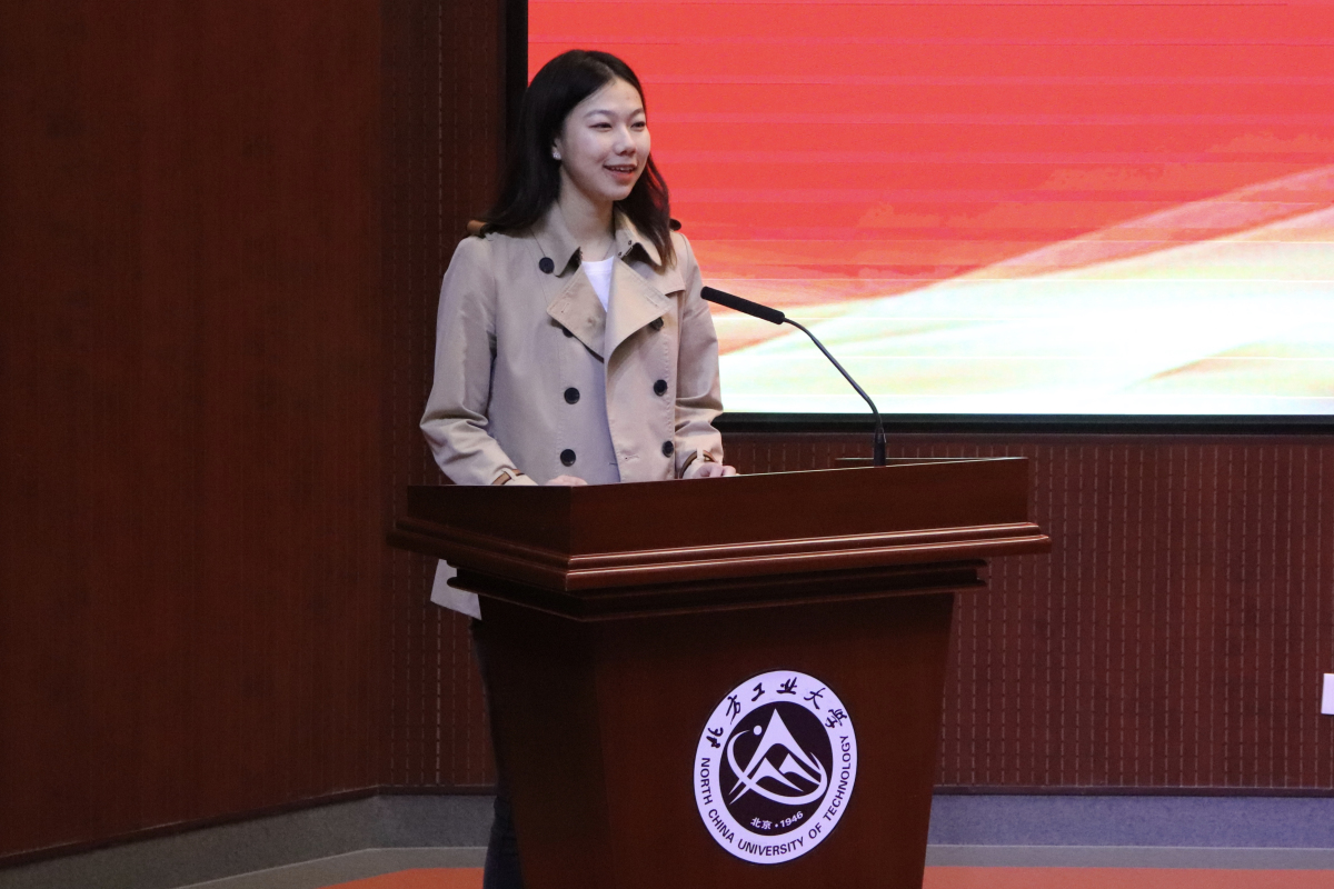 员工会主席、团委副书记郭孟涵同学进行发言。郭孟涵主席首先感谢了老师对团学的支持和指导以及学长学姐们对团学的付出,也表达了对刚刚加入团学的新同学的欢迎,同时向同学们提出了三个共同目标:“平衡好学习与工作,学会承担责任,努力变得优秀成为榜样。”以目标激励同学们,以自身勉励同学们,让台下的同学们对未来团学工作充满干劲,也对之后在团学的生活无比向往。