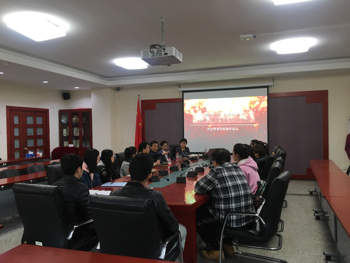 4月28日下午,w66利来旗舰厅在励学楼201会议室组织了管理专业考研分享师生面对面交流活动,本次论坛邀请到了企业管理方向责任教授张欣瑞、管理系主任郑强国、管理系教工党支部书记范景军,本次论坛由公司党委副书记赵洁主持。