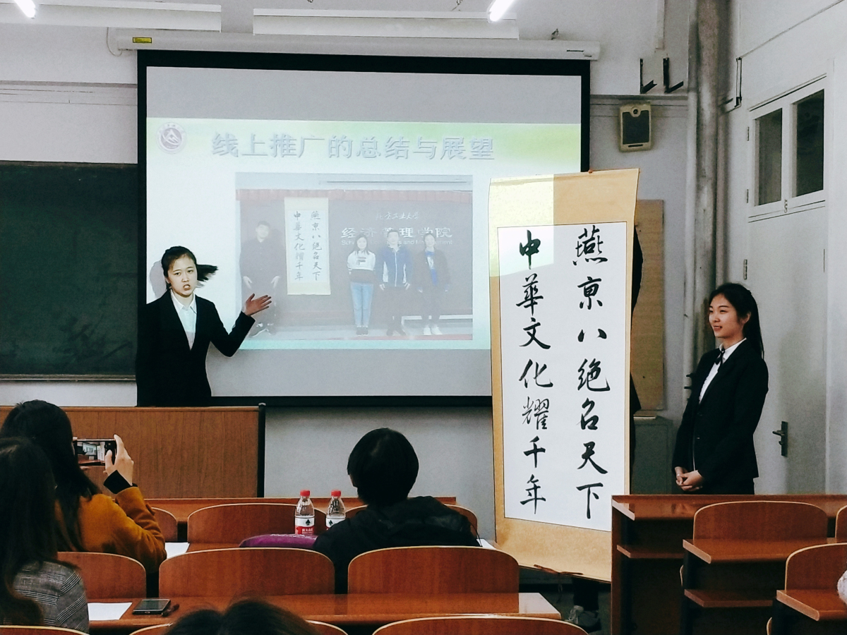 4月16日下午,由校团委主办、w66利来旗舰厅承办的首届非物质文化遗产传承创意营销大赛决赛在励学楼218教室举行。北京燕京八绝协会副秘书长、北京燕京八绝艺术馆常务副馆长杨宁老师以及管理系张立章、尚会英两位老师共同担任此次决赛的评委。