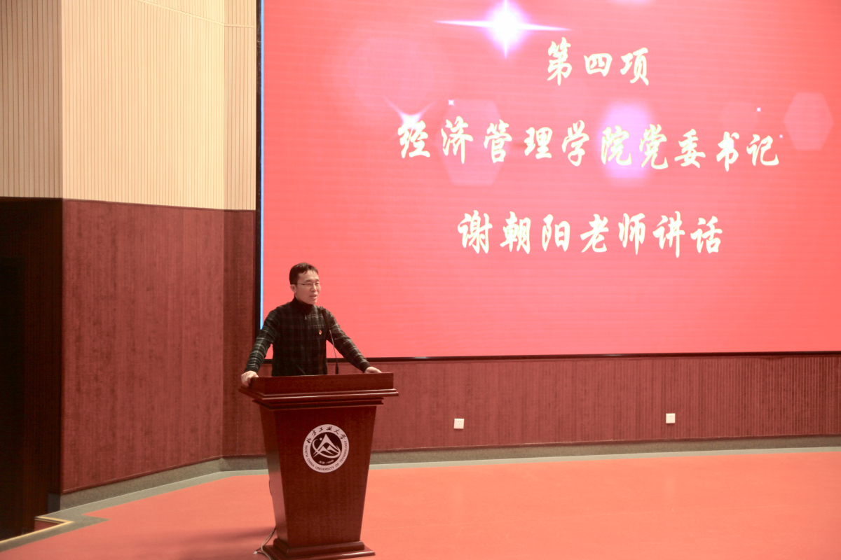 大会在庄严的国歌声中正式拉开帷幕。谢书记代表公司党委,发表了讲话,他对学代会的召开表示祝贺,对各位员工代表为公司的发展积极建言献策表示感谢。同时,谢老师也对大家提出三点希望。一是希望大家要加强理论学习,坚定理想信念,把握人生中最美好的时光,尽快成长为祖国的合格建设者和可靠接班人。二是希望大家要在实践中锻炼、在实践中提高,努力成长为“勤奋创新、阳光向上、敬业乐群、善于表达”的经管人。三是希望大家要增强服务意识、提高服务能力,做好老师和同学们之间的沟通纽带,在服务中体会别样的获得感和幸福感。