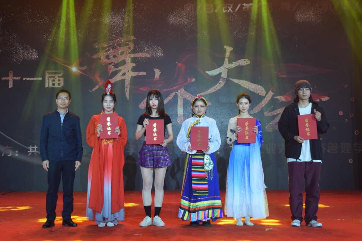 此次舞林大会分为四个篇章,分别为旧日芳华、星火燎原、百家争鸣和世纪风采,以改革开放以来舞蹈的“进化史”为时间主线,同学们用舞蹈展现了国家的进步,表达了国家富强、人民幸福的喜悦。选手们通过古典、民族、拉丁、爵士、街舞等不同舞种的融合,以“舞”抒情,精彩绝伦的技艺引发了全场阵阵掌声。最终,“焕”队和马莹子同学分获团体一等奖和个人一等奖。公司党委副书记田红芳老师,员工工作部部长高国伟老师,校团委书记何有华老师为获奖选手颁奖。