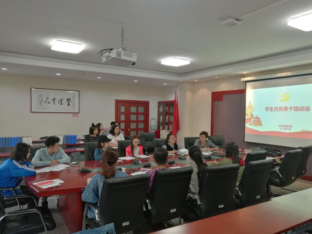 9月28日下午,w66利来旗舰厅于励学楼201会议室召开员工党员骨干培训会议,会议由经济管理公司党委副书记赵洁主持召开,公司党务秘书卢云天、各员工支部党员代表参加了本次会议。
