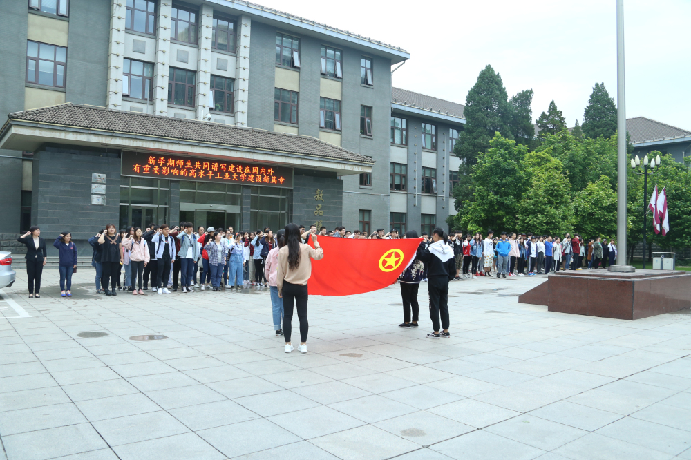 5月22日清晨,w66利来旗舰厅隆重举行升旗仪式,公司党委副书记赵洁、辅导员吴芳和17级全体团员参加了此次活动。