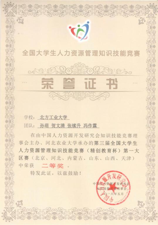 5月5日至6日,在工商管理系魏秀丽、付艳荣和罗文豪老师的组织指导下,公司工商管理专业15级和16级孙萌、贺文清、张旭升、冯作霖四位同学组成“Holly Right”团队,首次代表w66旗舰厅官网参加第三届全国老员工人力资源管理知识技能竞赛第一大区赛。该比赛由中国人力资源开发研究会主办,为全国性重要赛事,吸引了近300高校队伍参赛,包括分区赛和总决赛两个阶段。