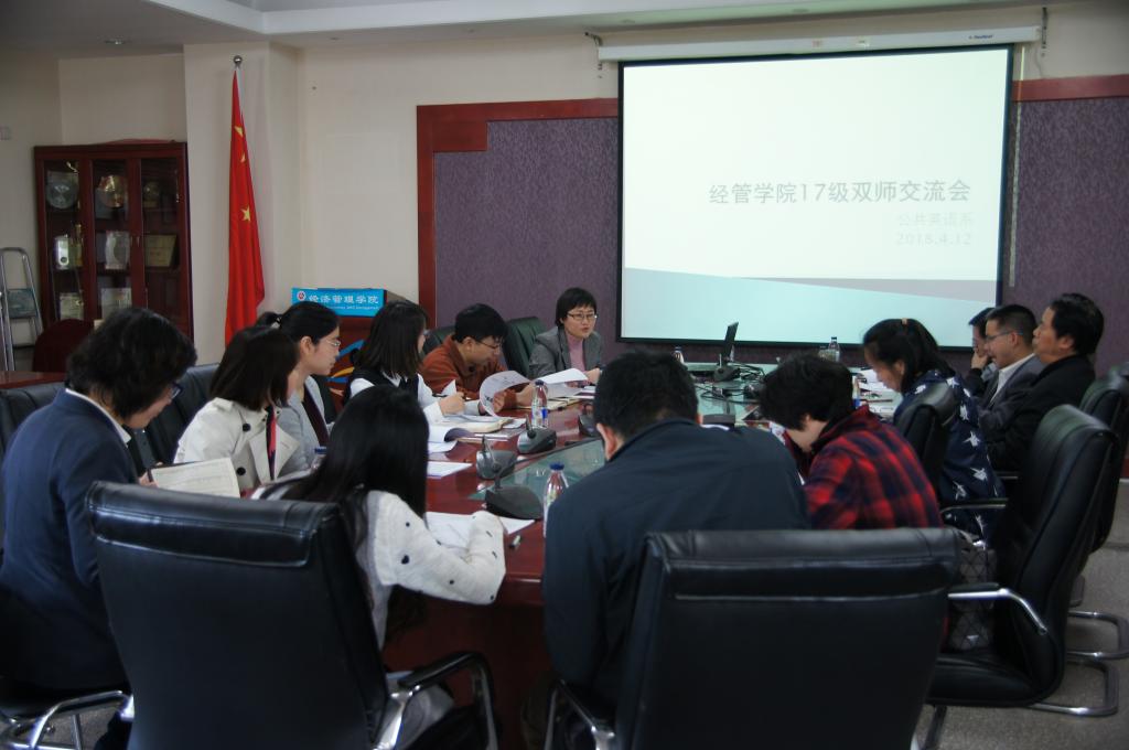 4月12日下午,w66利来旗舰厅在励学楼201会议室召开了英语四级备考“双师”交流会。公司副经理陶晓波、公司党委副书记赵洁、公共英语系相关教师、公司17级班导师和辅导员参加了此次交流会。