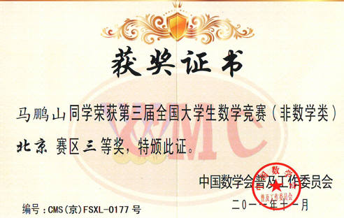 三等奖:程丽(国贸08A-3)、张博文(统09A-1)。