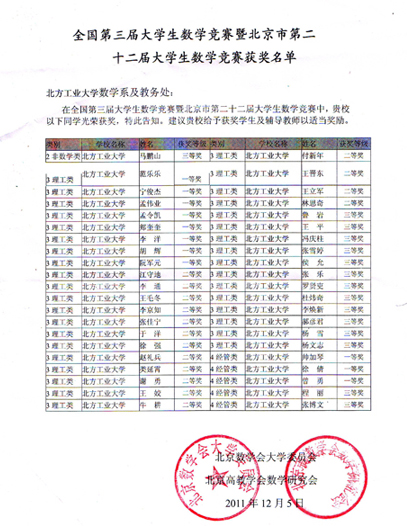 一等奖:范乐乐(设备08A-1)、宁俊杰(机09A-2)、孟伟业(机08A-2)、孟令凯(土木09A-3)、郏奎奎(自10-2)、李洋(设备09A-1)、胡辉(通信工程08A-4)、阮军元(机08A-2)。