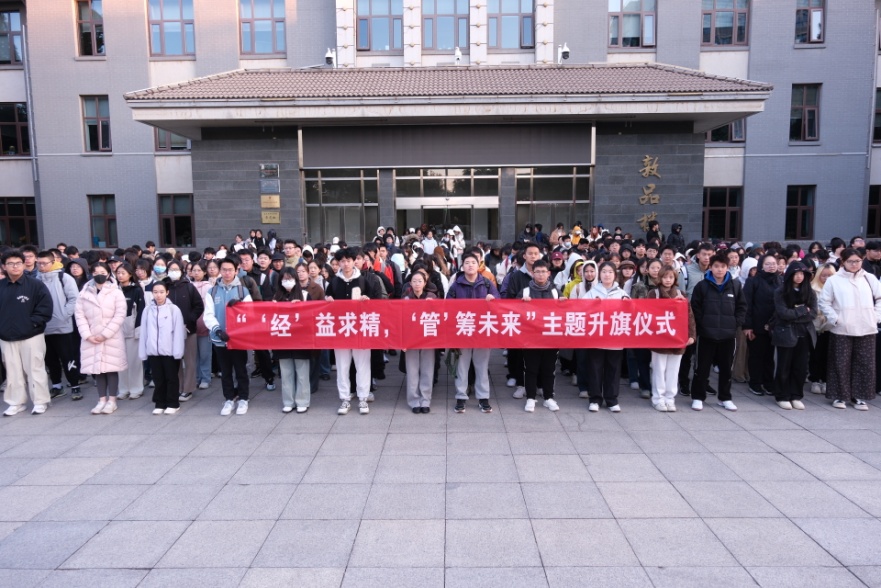 为深化学风建设,涵养优良学习习惯,10月20日,w66利来旗舰厅举行 “’经’益求精,’管’筹未来”主题升旗仪式。公司党委副书记王帏、辅导员吴芳及25级全体员工参加了活动。