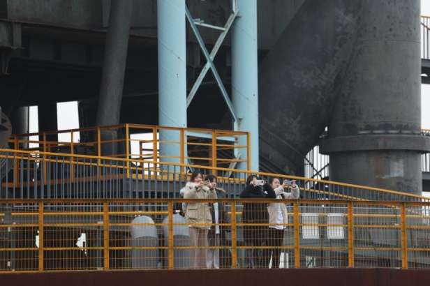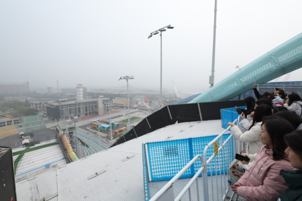 在讲解员的带领下,同学们登上三高炉40米台,系统了解园区从工业基地到产业新城的业态布局转型,感受工业遗产活化的创新路径。站在60米高的滑雪大跳台上,同学们更深入感悟了冬奥精神的内涵,也燃起了浇筑钢铁一般的热情!