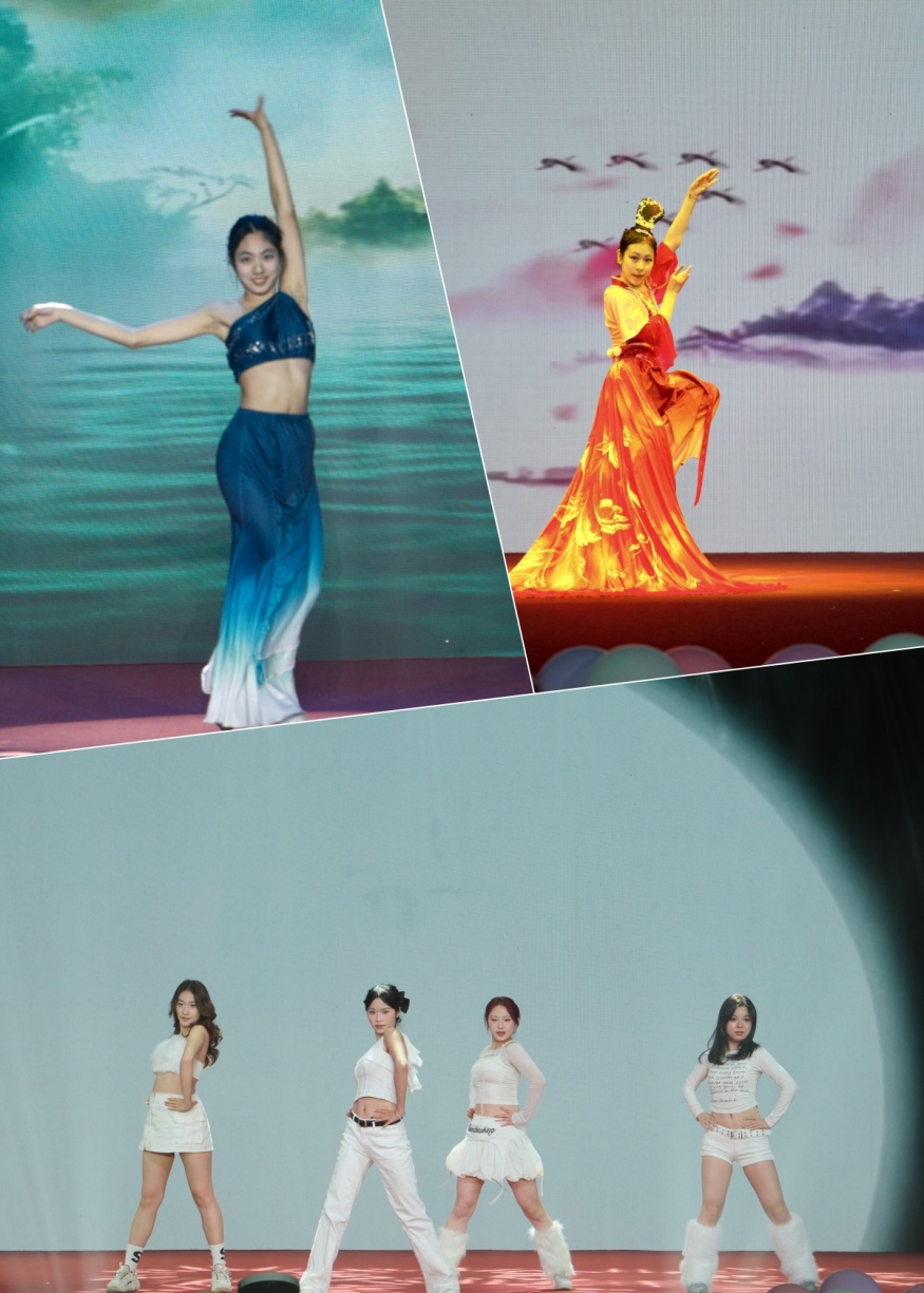 中国舞、流行舞、团队舞轮番登场,演绎舞蹈艺术的包容与多样。古典舞选手衣袂翻飞,将传统文化的典雅韵味展现得淋漓尽致;流行舞爱好者踏着动感节拍,用酷炫舞姿彰显青春活力;团队舞者们配合默契,动作整齐划一,在队形变换中传递协作力量。