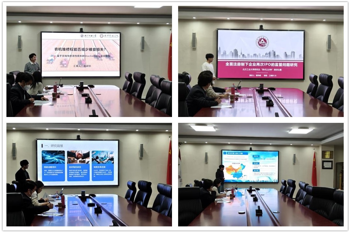 比赛中,参赛同学在三分钟内,围绕研究背景、核心问题、研究方法与创新点,以清晰的逻辑和生动的表达展示了各自科研工作。选题覆盖城乡融合区域协调发展、水资源治理、数字经济、企业IPO监管以及绿色低碳经济等前沿领域。选题视角新颖、内容丰富多彩,充分彰显了公司浓厚的学术氛围与同学们的科研广度。