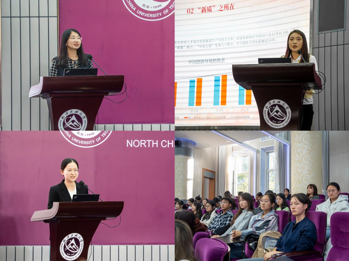 宣讲报告会上,马克思主义公司副教授张晓晨围绕“新时代新征程中国共产党的使命任务”这一主题,从我国发展新的历史方位、实现中华民族伟大复兴的艰巨性、以中国式现代化推进中华民族伟大复兴三个方面,强调我们必须坚持以中国式现代化全面推进中华民族伟大复兴,坚持把国家和民族发展放在自己力量的基点上、把中国发展进步的命运牢牢掌握在自己手中。宣讲团成员蒋颖同学聚焦老年食堂的发展,对社会对老年人群体日益增长的关注和照顾,国家坚持以人民为中心的发展思想,不断增进民生福祉娓娓道来。陈思雨同学以最近大火的网络游戏《黑神话·悟空》开篇,讲述新质生产力的内涵,号召同学们传承“兴工报国”传统,践行“强国有我”誓言,争做“新质”青年。