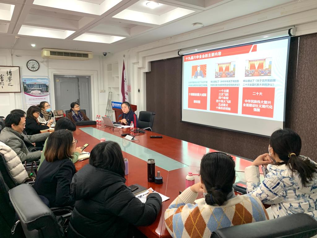 2021年12月10日下午,w66利来旗舰厅会计系教工党支部在励学楼301会议室组织学习“党的十九届六中全会精神”。支部特邀请马院宣讲团的韩小南老师来做报告,会计系教工党支部的党员教师参与了本次学习活动。