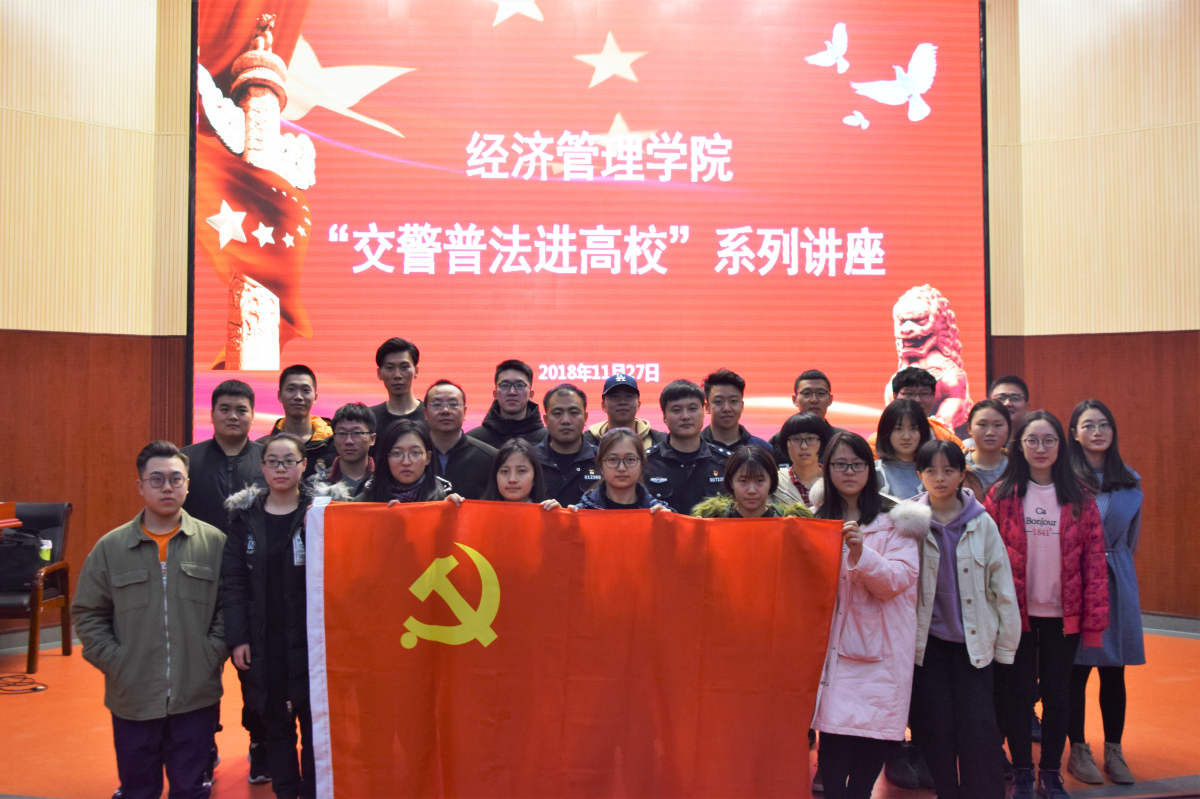 2018年11月27日下午,为了提高在校老员工的道路安全意识,增强自我保护意识,管理系第二员工党支部组织开展“交警普法进高校”系列讲座,本次讲座邀请到了北辛安交通大队李明、乔攀两位警官。