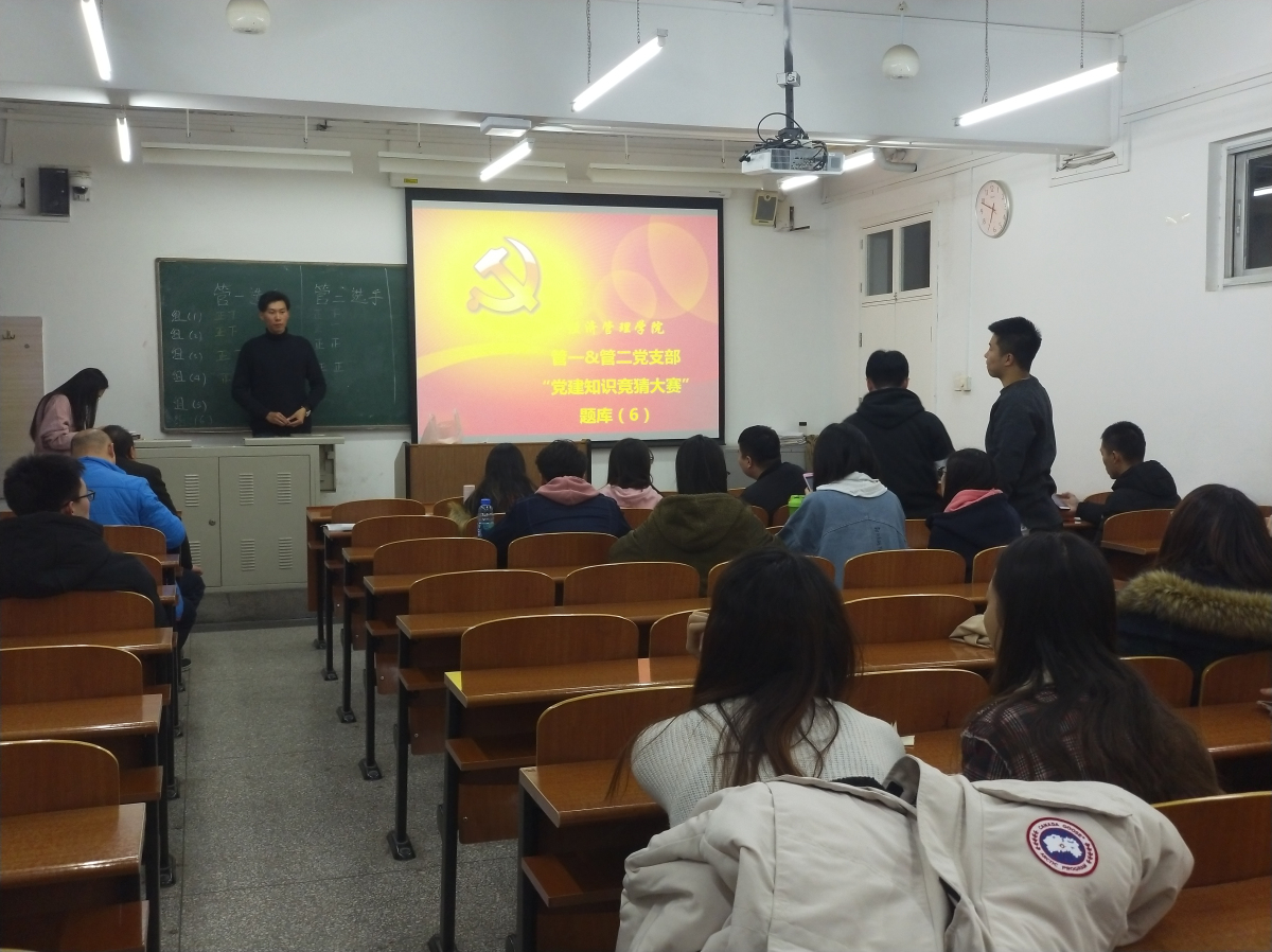 2018年11月22日下午,为了增强党支部之间凝聚力,提高党员综合素质,营造良好的学习氛围,管理系第二员工党支部联合管理系第一员工党支部组织举办“不忘初心铭记党史”主题知识竞赛。参加竞赛的成员有管一、管二支部正式党员、预备党员共26人。