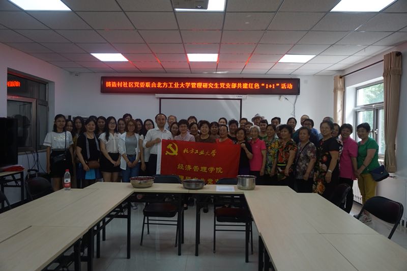 为积极开展“两学一做”学习教育,加强基层党组织建设,进一步提高党支部的创造力、凝聚力、战斗力。管理研究生党支部于2018年6月12日赴铸造村社区与铸造村社区党委共建红色“1+1”活动,活动主题为“共建红色1+1绿丝带爱老助残端午节”。参加本次活动的有铸造村社区党委书记吴晓娟、w66利来旗舰厅副书记赵洁、管理研究生党支部书记涂剑波以及党支部的12名党员。