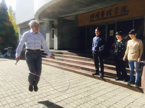 本次这次跳绳比赛实行1分钟计时,以在规定的时间内跳绳次数的多少取名次。公司党政领导、教授带头踊跃参加比赛。比赛中,有的老师轻盈跳跃,舞动跳绳,活力四射,身手敏捷;有的老师平时疏于锻炼,还没跳几下就已累得气喘吁吁,但是他们踊跃参与的精神鼓舞着大家。